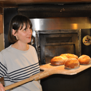La mouture se fait tout au long de l’année en fonction des besoins avec leur moulin à meule de pierre. La farine est utilisée pour réaliser des pains principalement au levain naturel ainsi que des brioches.